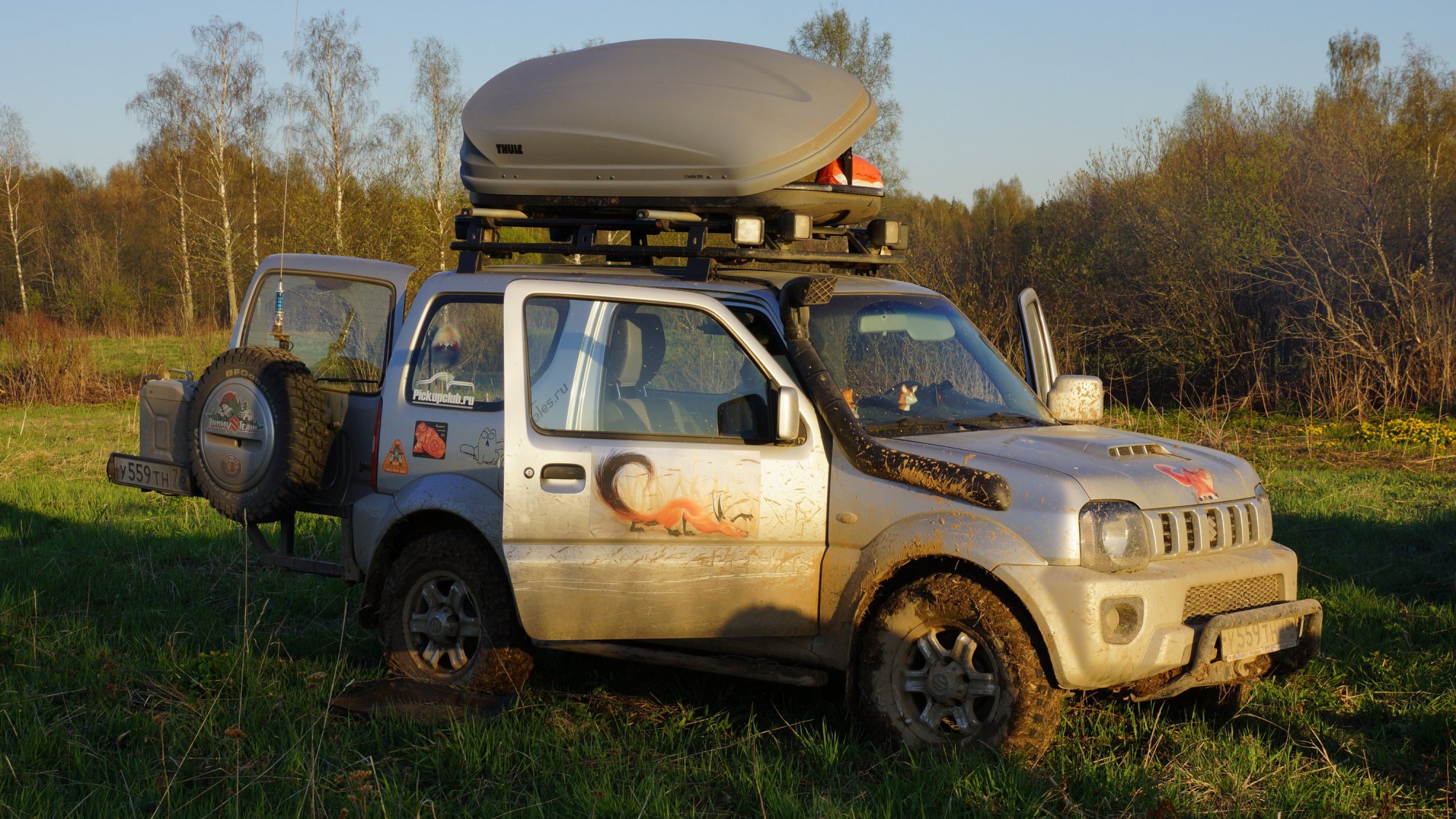 Да, с боку наклейка Чухлома, сзади на стекле желтая наклейка TLC клуб кажется.