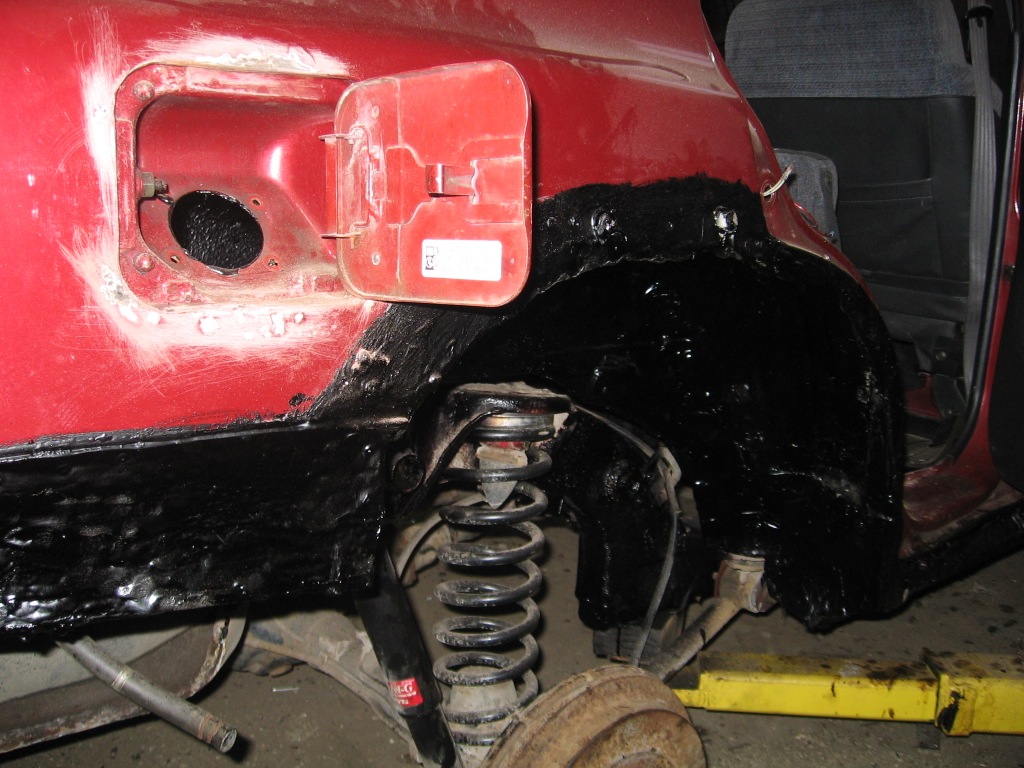 Фотки не получились((( Ярко солнышко светило) Работал в униформе теперь крест на спине от загара. Хотел спустить брызговики вниз...смотрелось ужасно. Вырезал за под лицо с бампером. Снял колесо отрезал кусок картона 35*140, карандашиком пометил места сгиба. Вырезал картон. Вставил, подогнал. Перенес на изолон...вырезал. Пол ведра пушсала на задние арки, привернул изолон. На стыке изолона с кузовом где "уши" намазал еще пушсалом чтоб там не набивалась грязь. Отверстие под глушитель вырезал по месту ножницами для ногтей) Подкрылок готов. Правый подкрылок проще, вывернул картонный макет левого и вырезал изолон. повторил операции. Удивило что в машине стало значительно тише!!! Завтра передние арки! 3,5 метра материала в самый раз. сегодня вдоль отрезал 35 см, осталось 55см*3,5 метра должно хватить на перед.