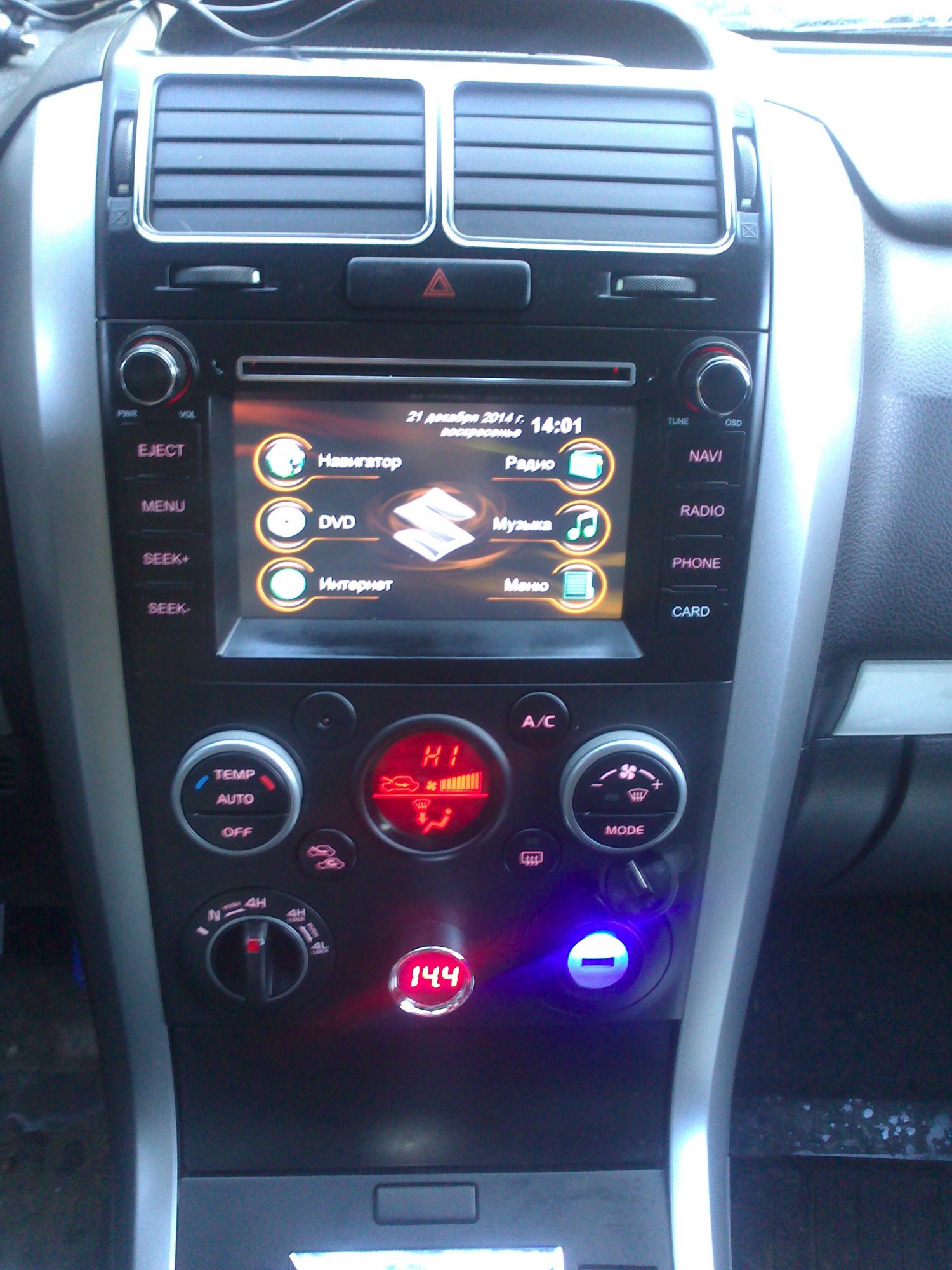 Также хотелось и соблюсти эстетику и вписаться в общий дизайн панели NSGV. Поэтому ориентировался на стрелочный вариант с красной подсветкой. Получилось найти в итоге даже с LED-экранчиком, дополняющим аналоговые данные. Подсветка возможна белая (при этом стрелка остаётся красной, как и на приборке) либо красная.