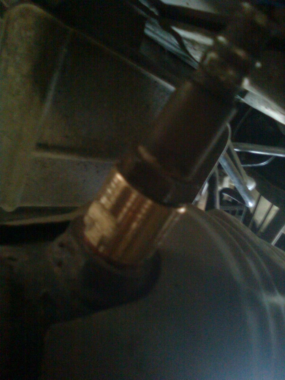 Выбил из первого катализатора соты которые там еще остались. Сначала была мысль поставить вместо него пламягаситель, но отказался от неё т.к. датчики кислорода вставлены довольно глубоко и могут помешать.