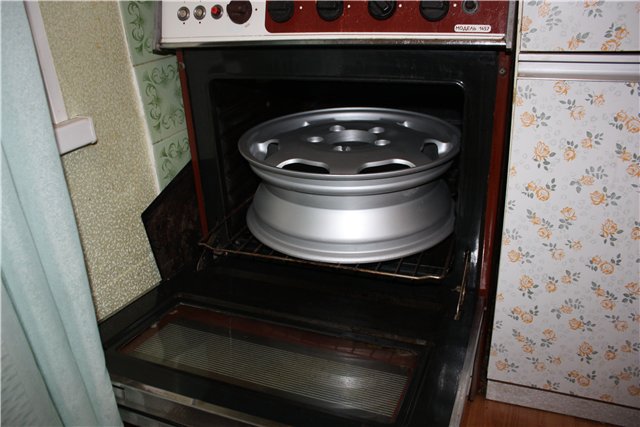 Прощлой осенью красил диски из балончика на лестнице у лифта,т.к. погодные условия не позволяли,а сушил в духовке..-многим этот прикол памятен,когда разыграл коробку с пивом-что у меня в духовке..???