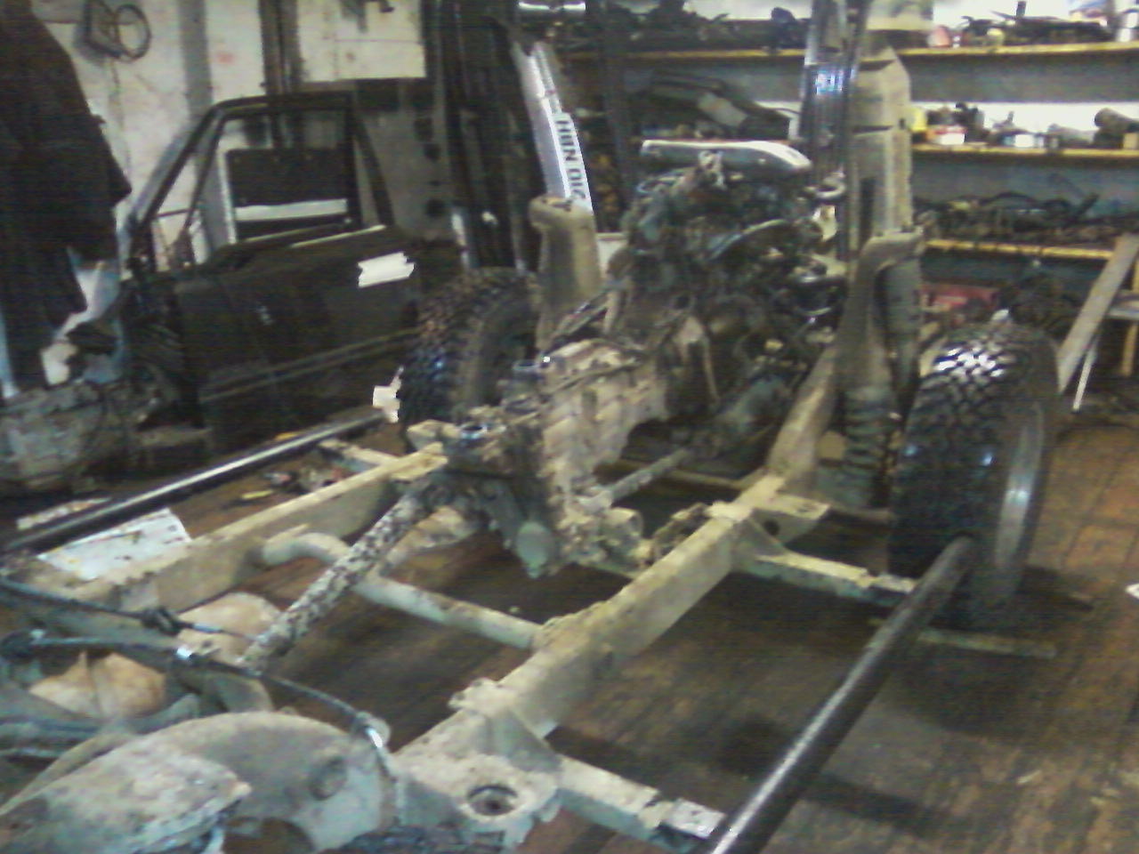 Замена КПП , маховика , сцепления, бензонасоса , топл.фильтра на подготовленные площадки над бензобаком. Промывка всего что попало под руку в бензине , для чего была зарание налита канистра 20л . Доставание кучи обломанных болтов из рамы при помощи сварочника , и какой-то матери.