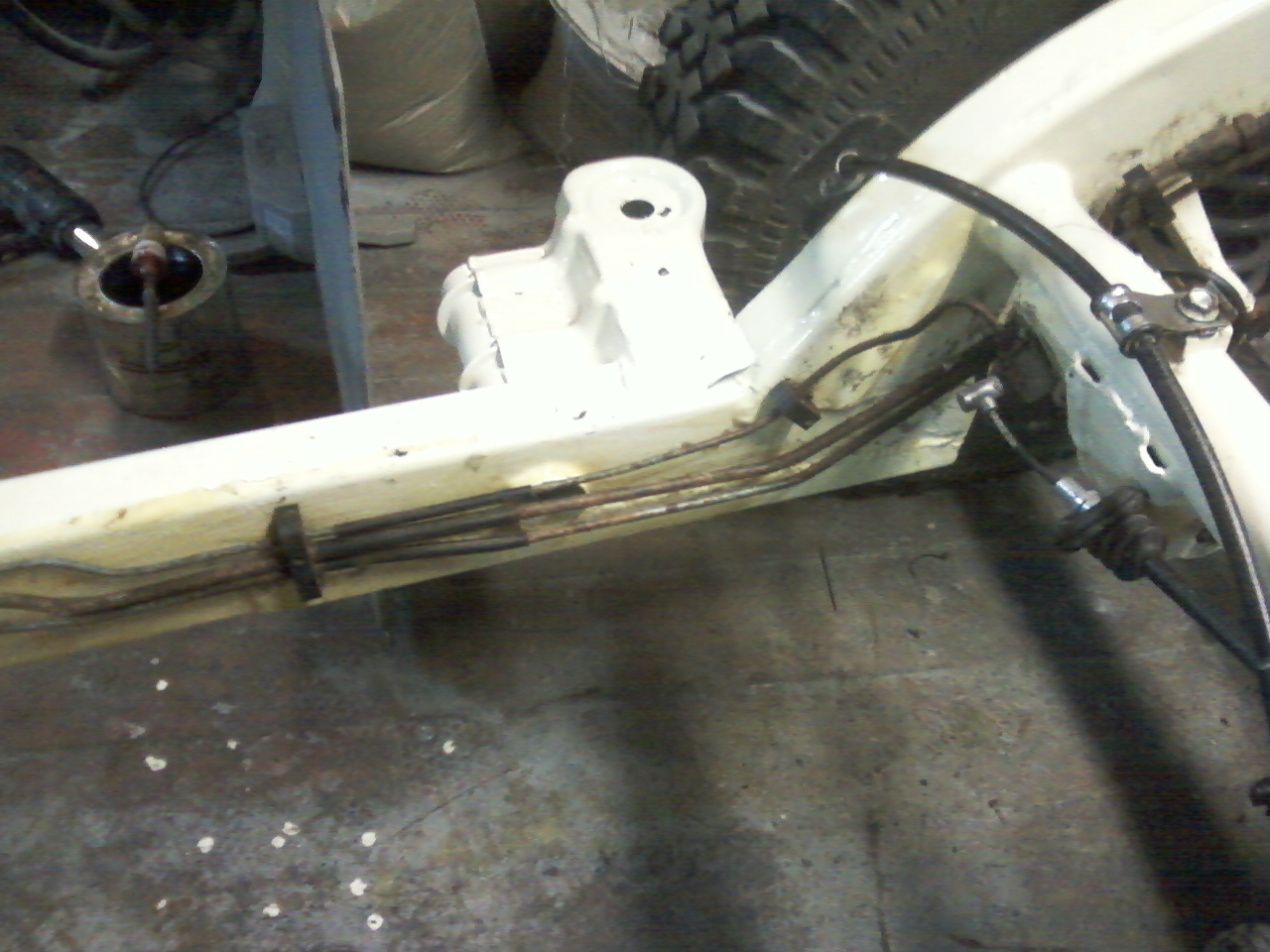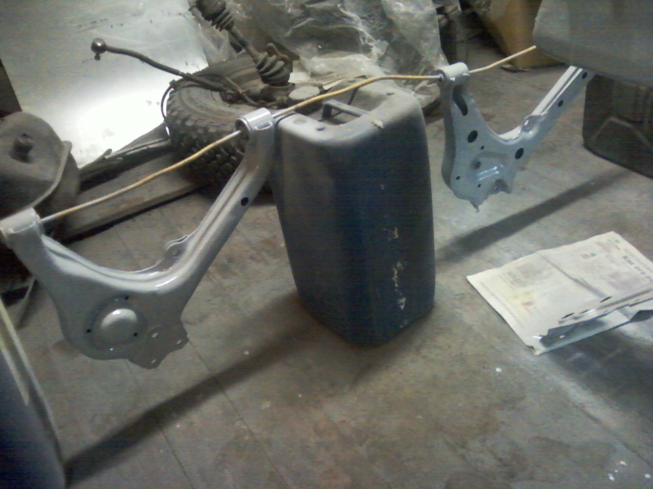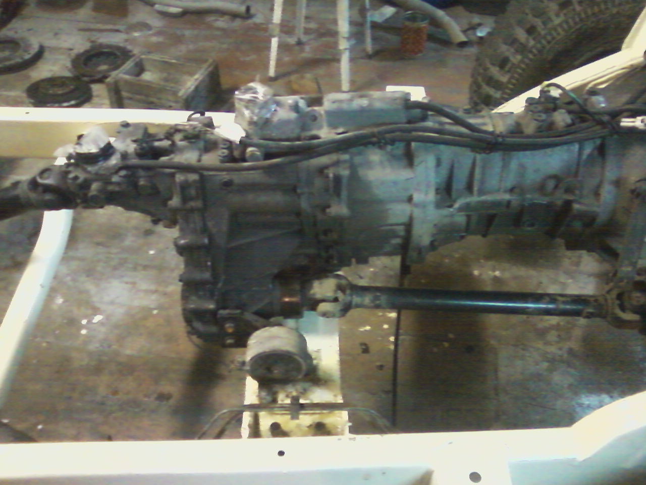 Дрыгатель на месте , на "новых" Б\у подушках , и на более хитрых кронштейнах , левый по ходу движения , с рычагом уходящим в купол КПП . Задний сальник коленвала, новое сцепление и контрактная КПП + маховик. Переднии пружины заменены на Б\у , у них верхний виток оказался не таким заломанным как на моих. Мосты и вся подвеска установлены , бензобак встал как родной на новые крепления.