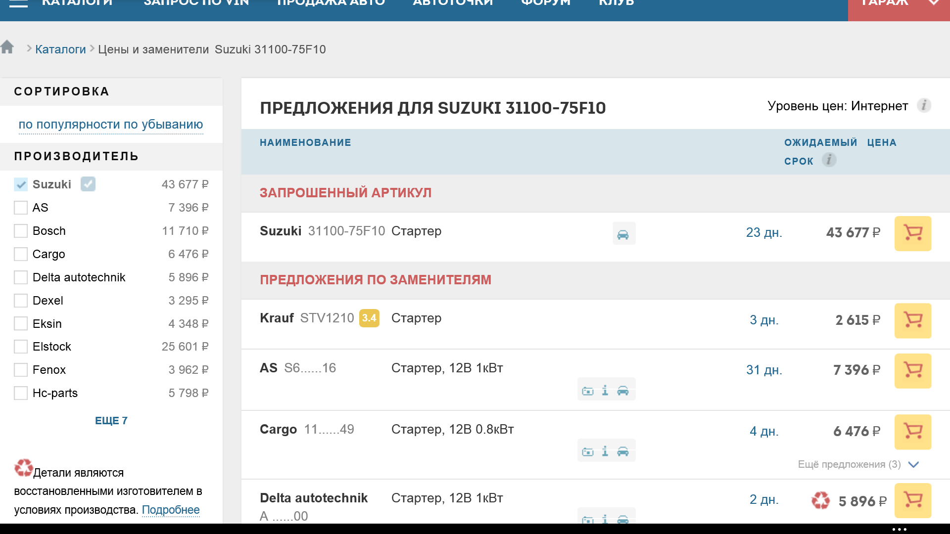 какая разница, если аналоги есть и они подходят и работают? есть и бош и валео и чего угодно. и даже этот за 43 тысячи подойдет на матиз и будет работать. и стартер от матиза подойдет на сузуки и будеет работать, если норм производитель, т.к. в оригинале он ровно такой же с такими же параметрами. и на вагон стартер что на 06, что на 1.2 - одинаково работать будут.
