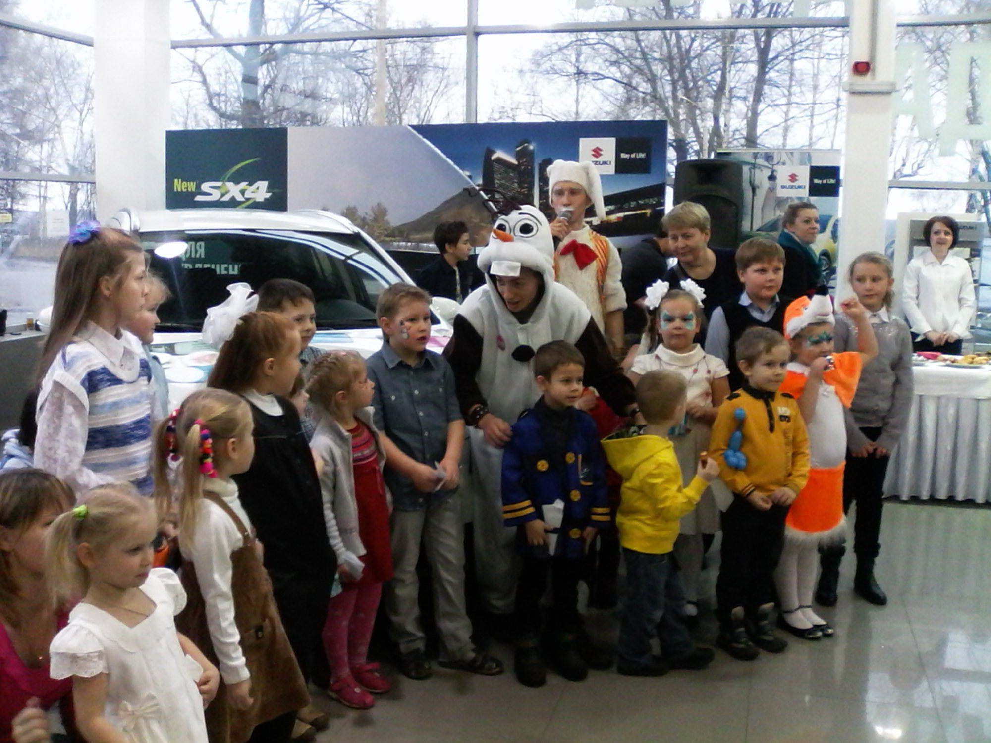Указал:yes3:, у меня правда не полноприводный, но брал машину с хорошим клиренсом, в том числе и поэтому. Кстати, вот на форумах не принято лестно отзываться об ОД, а мне тут наш ярославский "СИМ" позвонил, уточнил есть ли дети и пригласил с ребенком совершенно бесплатно на елку в автоцентр. Я все ждал какого-нить подвоха, ведь машину-то я приобрел еще летом и даже ТО0 прошел, ан нет, пришли, посмотрели интересную программу, не без доли рекламы, конечно, но она была уместна, получили подарок и были очень довольны. Жаль фотик забыл, нащелкал немного на мобилу, так что за качество звиняйтеПотому кроссоверы и покупаем полноприводные (не знаем только какая у Вас комлектация).