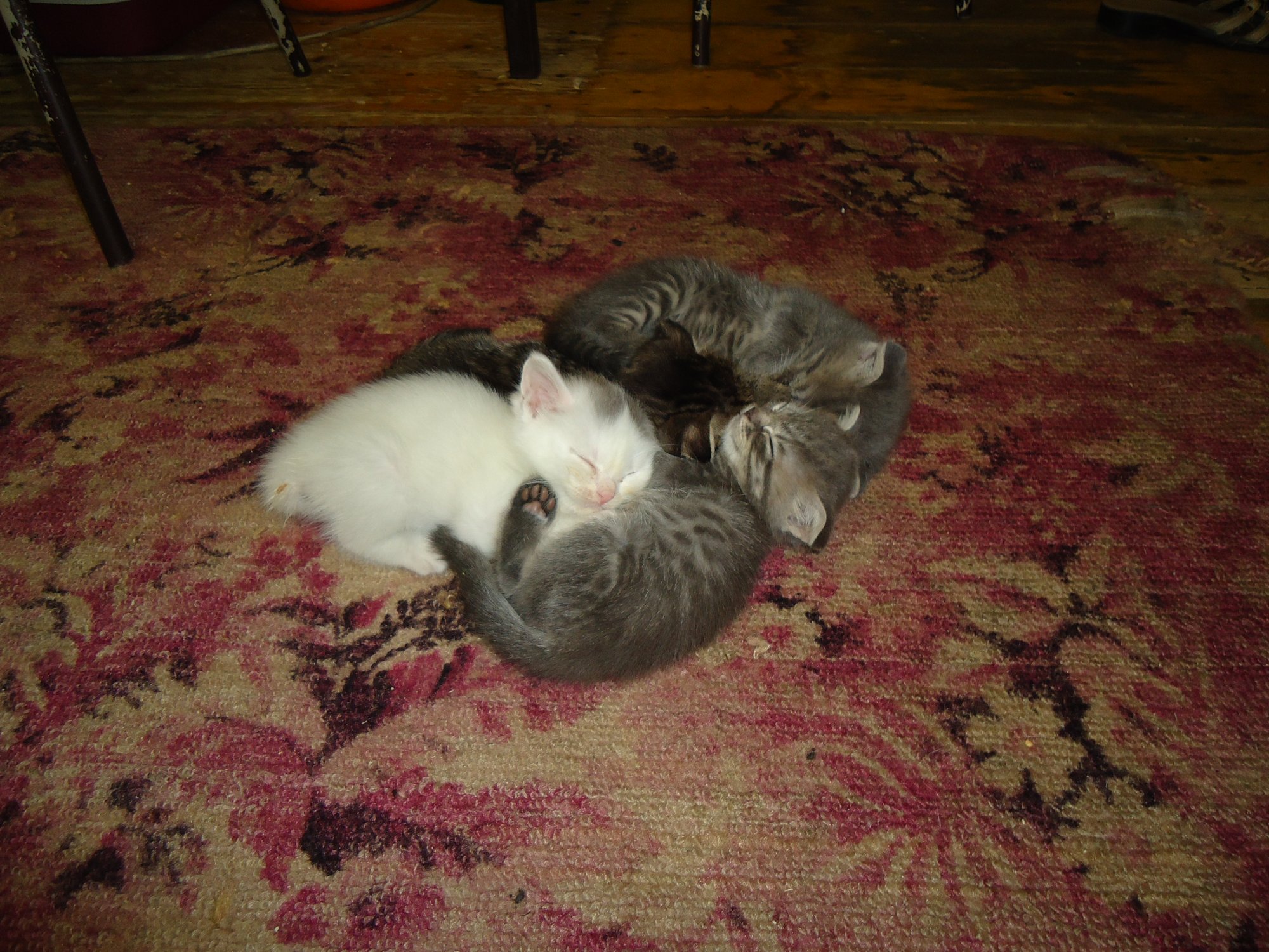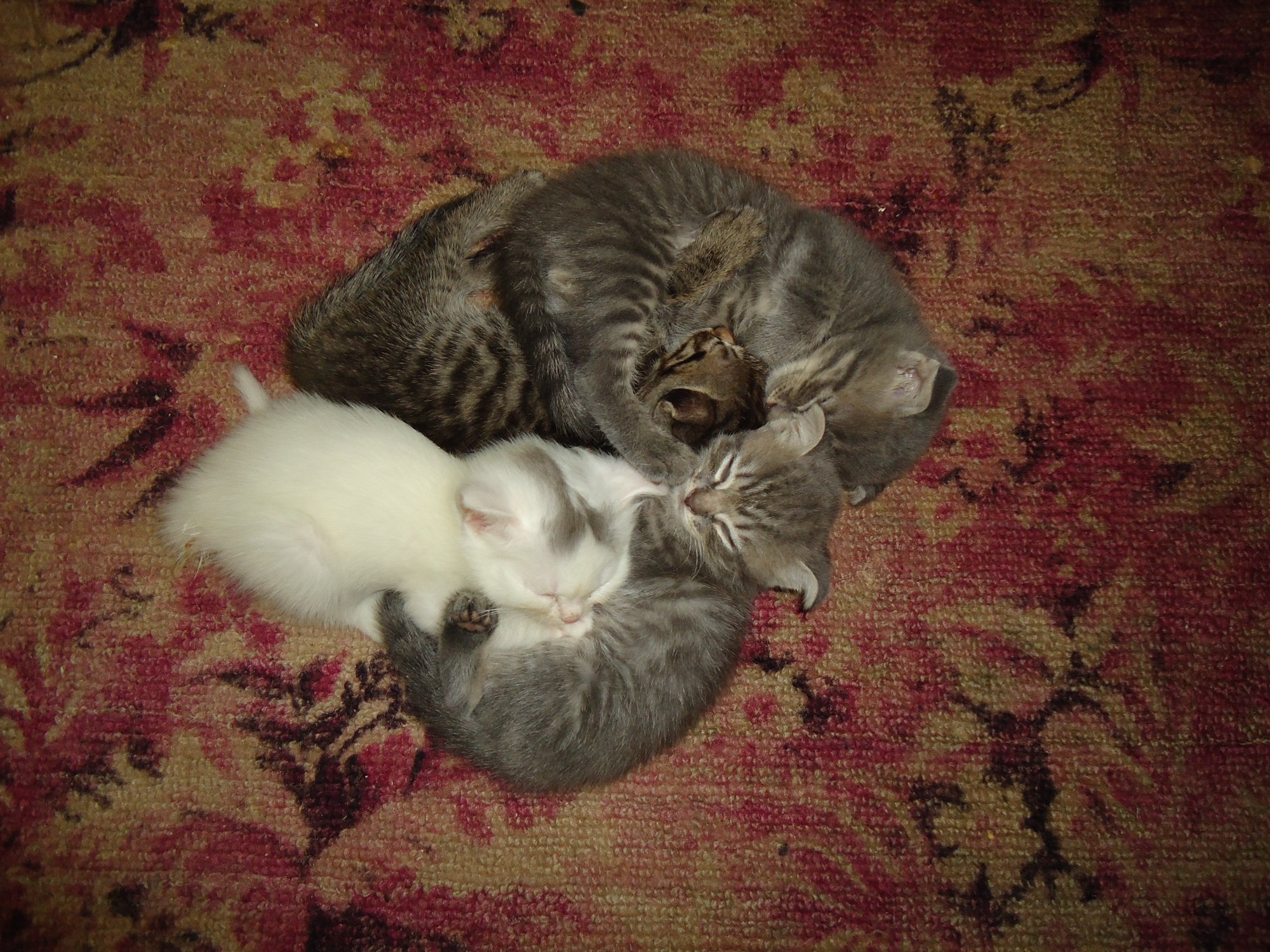 Слева - котопанда (сноу-шу, три годика, 7кГ). Какая-то сволочь выкинула на улицу котенком, умещалась в ладони. Выросла, откормилась, добрейшей души создание. Носится как электровеник, главное не попасться на траектории: сшибет нафиг!