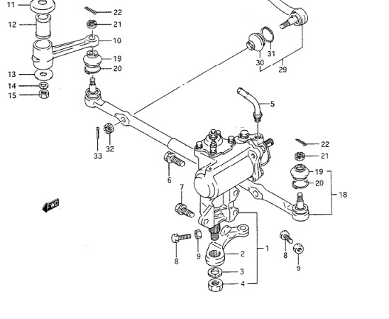 Доброго времени суток !!! Автомобиль Сузуки Витара 1993 г.в. G16B 5-ти дверка. Меняю рулевое. Хочу поменять редуктор ГУРа. Снял почти все ... но никак не могу снять рулевую тягу (№18 на фото) с сошки редуктора (№2) ... все перепробовал ... мож посоветуете что, или съемник может какой есть специальный.