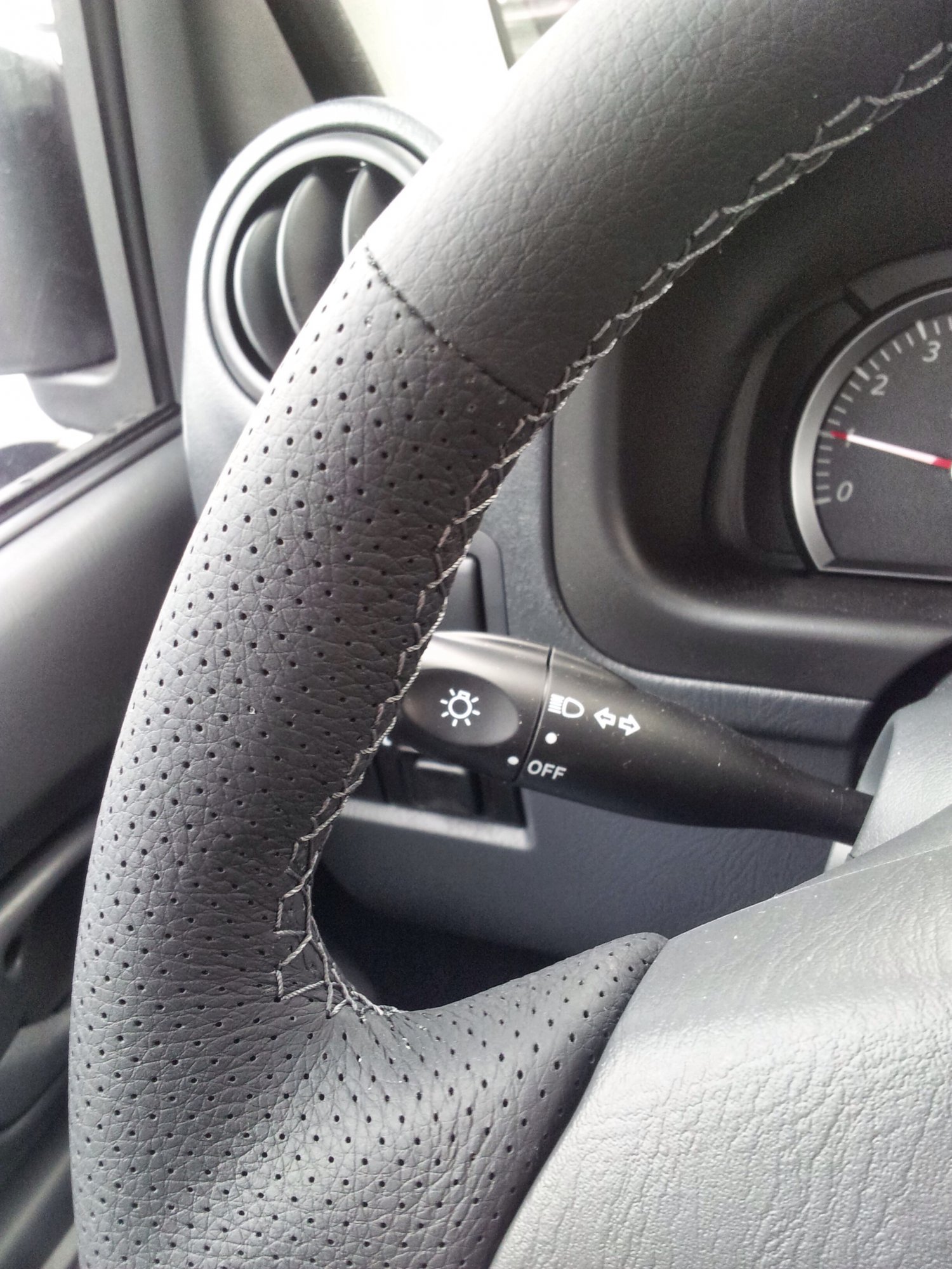 Когда выбираете кожу для руля, из которой вам будут шить, то поцарапайте шкуру чем-нибудь острым. Мне в этом плане больше понравились кожа "бмв" с текстурой,