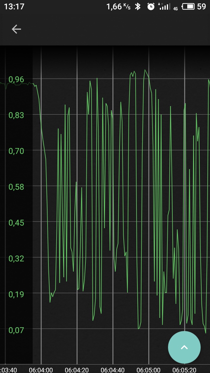 1 ДК не работает, вольтаж должен меняться от 0 до 1 вольта (0,9 в) с переходом через 0,42-0,45 вольт