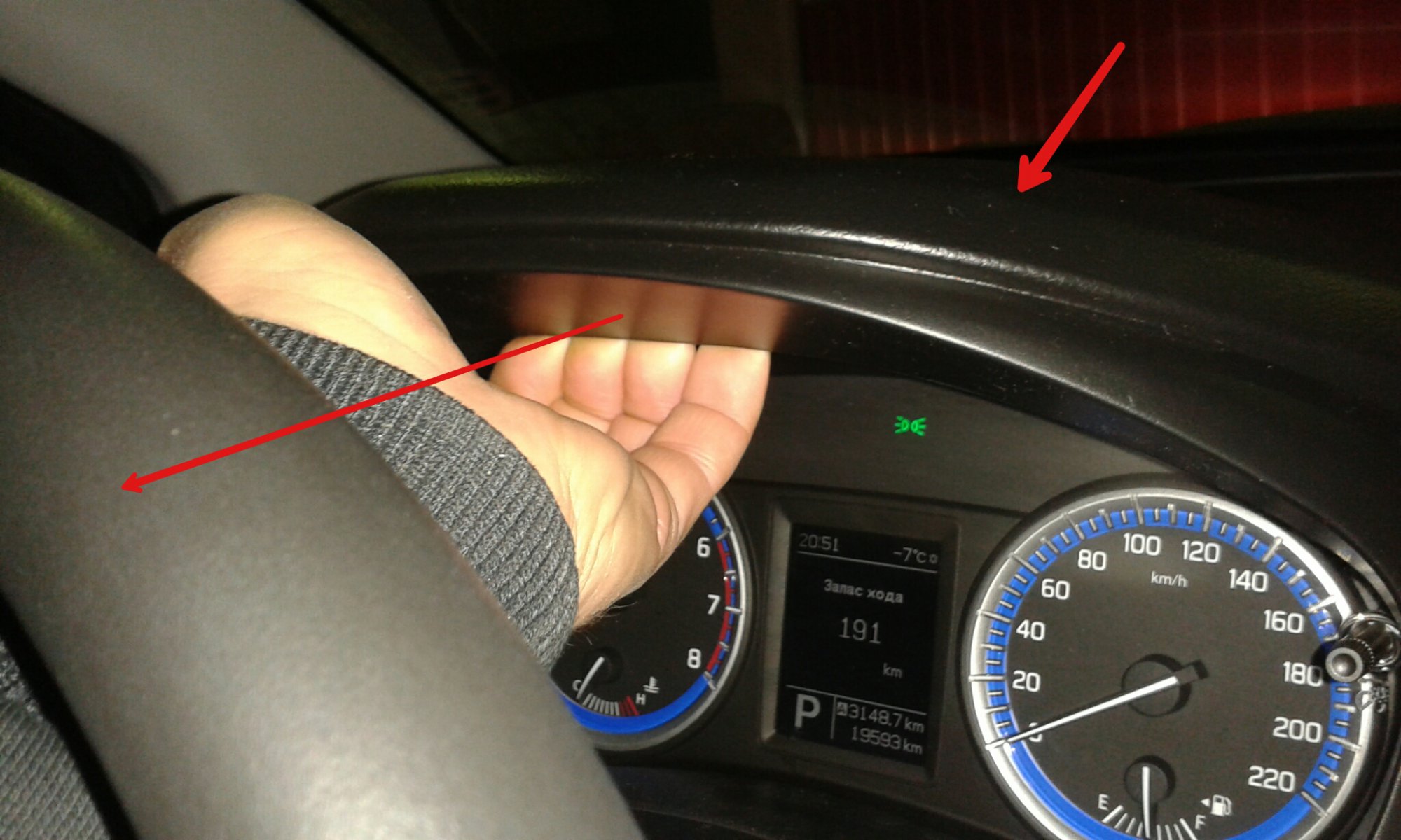 Вот именно , часто не постоянный. И чем на улице теплее тем быстрее после старта он пропадает. Подозреваю , что это дребезжат сами эти саморезы. А подтянуть их у вас не получилось?Залез сегодня.Снял бардачек.Без инструментов голыми руками.Там еще и справой стороны саморез.На фото видно,за саморезом прямоугольная пластиковая коробочка.В ней пассажирская подушка.Подушка в металлическом корпусе,который верхней частью зацеплен к накладке(какими то крючками)а низ этого же корпуса прикручен болтами к кузову.Даже если удастся отвернуть саморезы, накладку не снять,подушка не даст.Решил пока оставить сверчка,он не постоянный.