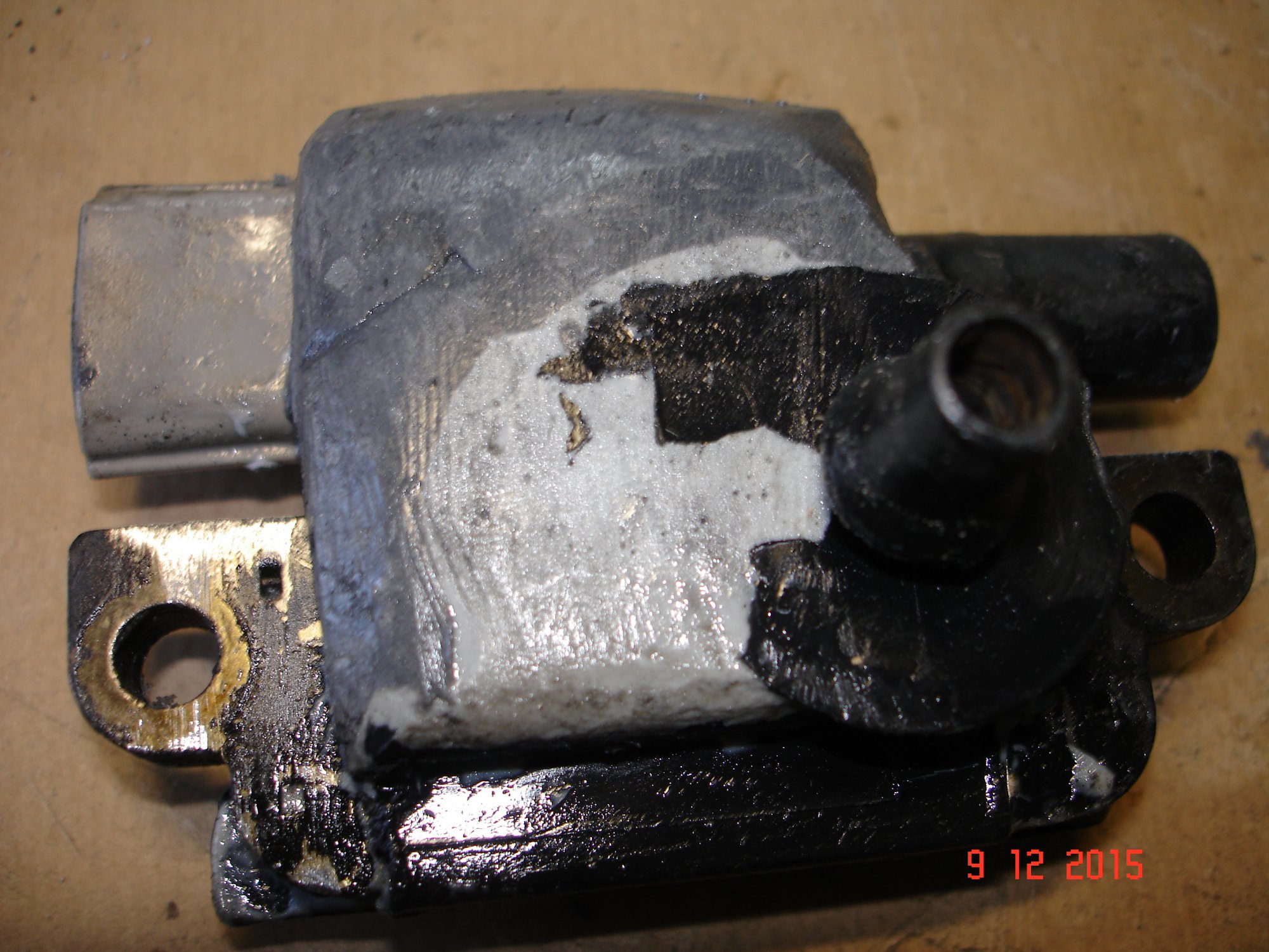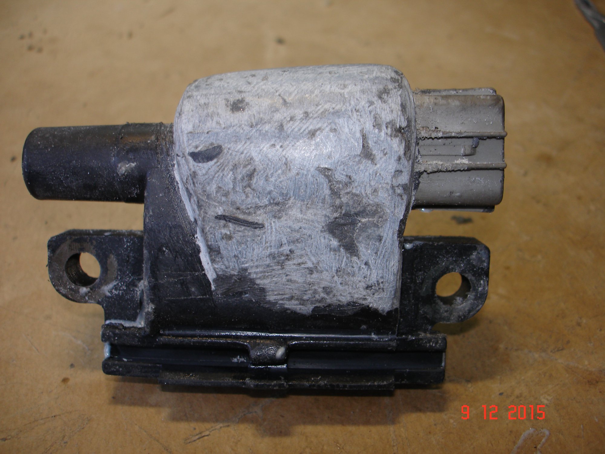 С родной катушкой DENSO когда-то замененной машина заводится и работает ,но загорается чек,в натяг ехать нет возможности, надо газовать больше 1500 об/мин чтобы тронуться,нет мощности плохо тянет,но идет.Так как у поврежденной китайской катушки дорога всё равно одна , в утиль,было решено ее препарировать и посмотреть ,какого цвета у нее кровь ,и за что просят столько денег..фотки прилагаются.