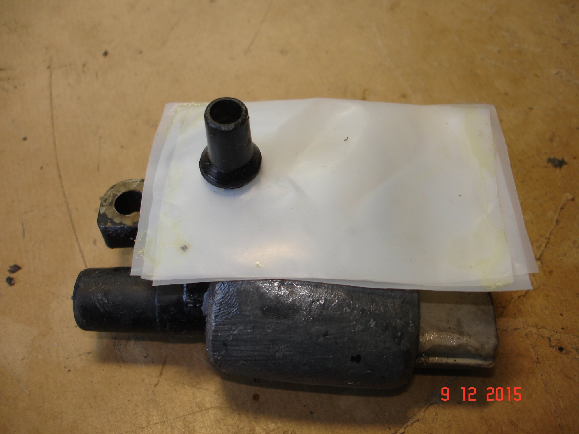 Перед установкой в темноте убедился что не шьют ВВ провода и нет никакого лишнего свечения,то есть пробоев изоляции еще где либо не наблюдается,пришлось немного обточить новый корпус катушки ,т.к.при лепке переборщил с размером.