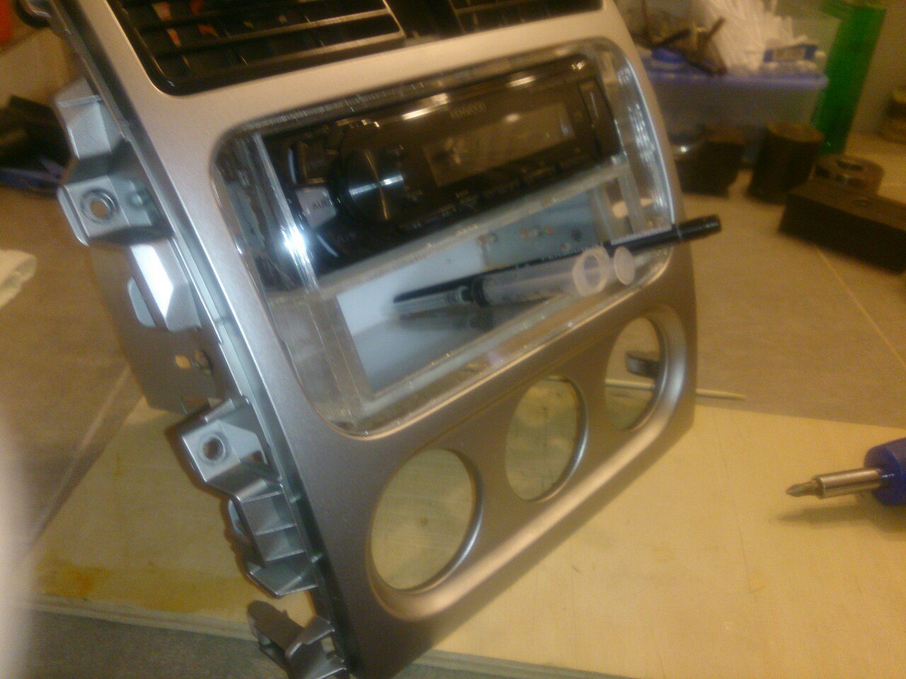 Отвод тепла каким образом думаете осуществлять? Это оч важно.Доброго времени суток. Обзавелся я магнитолой кенвуд 1-DIN. Но, как известно, на лиану недорогих рамок нет, а за 2тр заказывать придушила жаба.