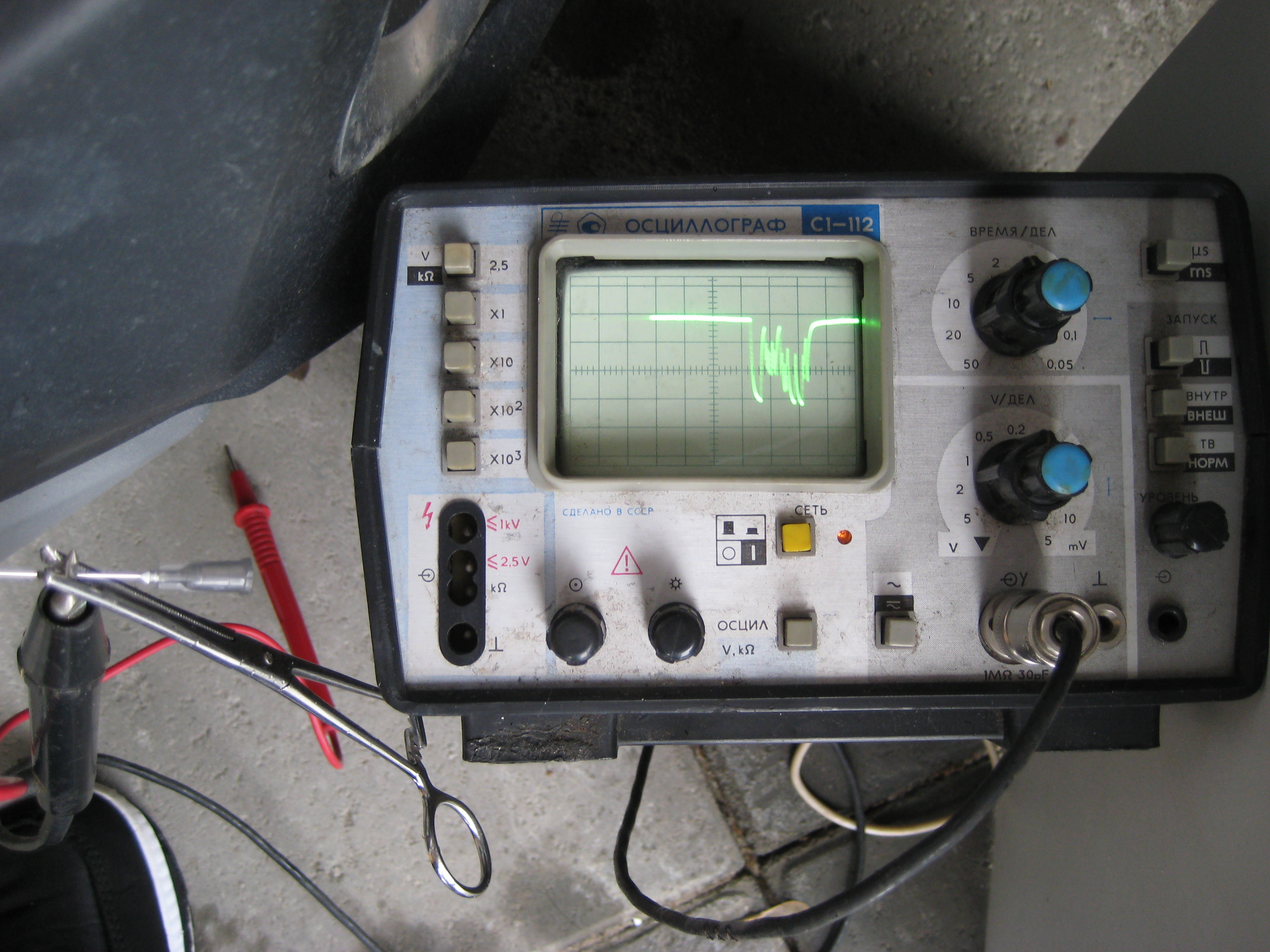 На этом возможности цифрового мультиметра исчерпываются. Вводим в бой тяжёлую артиллерию - расчехляем аналоговый осцилограф и штатным щупом проделываем тот же самый путь по контактам. Что мы видим? Во-первых, линия питания (контакт № 1) далека от совершенства – она и близко не ровная! Имеет волнообразный вид. На сигнальных проводах тоже какие-то помехи в виде всплесков, но их амплитуда менее 0,1 вольта (что как-то условно можно простить)
