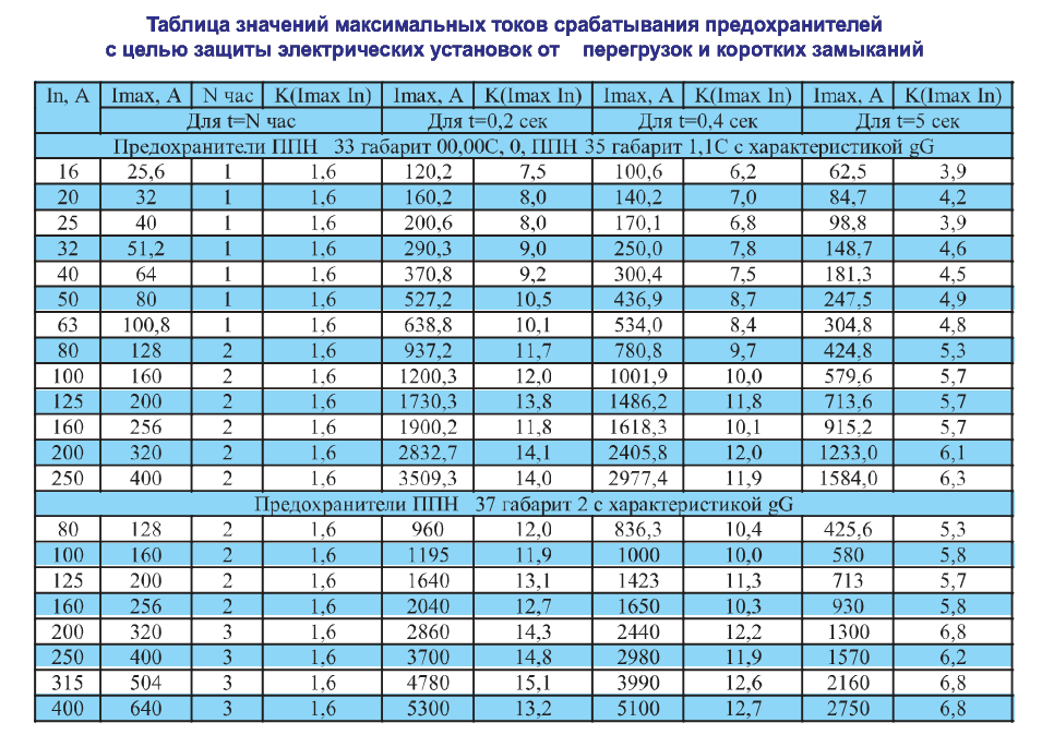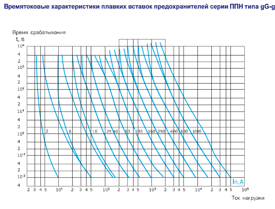 Если посмотрите на данные из паспорта отечественных серийных сетевых предохранителей низкого напряжения (ГОСТ Р 50339.0-2003), там эта картина очевидна.