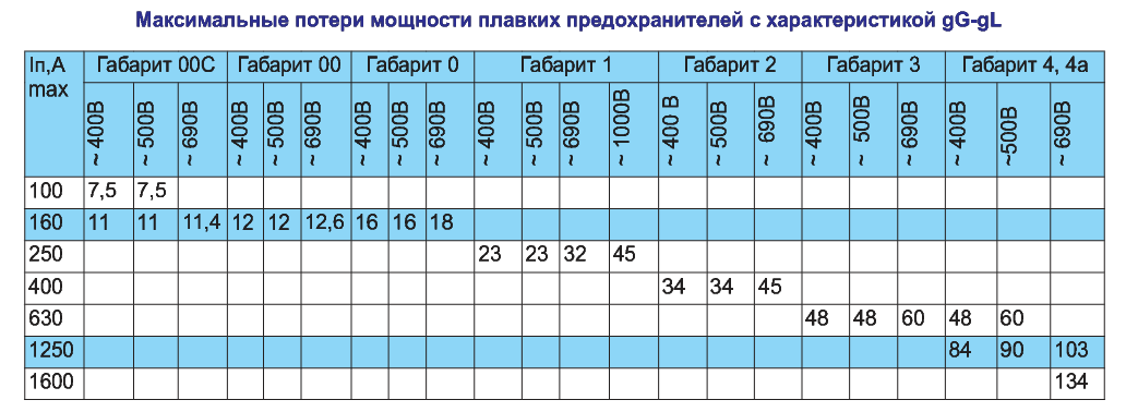 Предохранитель на 400 А номинального тока имеет потери мощности до 35 ватт (нагрев) - это полбеды. Для того, чтобы 400-амперный предохранитель сгорел за 5 секунд, его надо нагрузить током в 2750 А!!! А если 0.4 секунды - 5100 А. При токе в 640 А он способен проработать час, не сморщиваясь.
