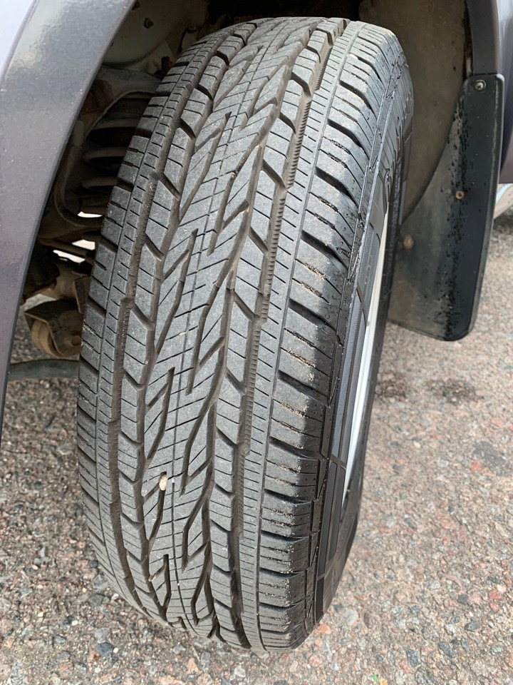 Комплект летней резины ContiCrossContact LX2 205/70R15 на диска Weds, зимней шипованной резины Continental IceContact 2 SUV 207/70R15 на стальных дисках.