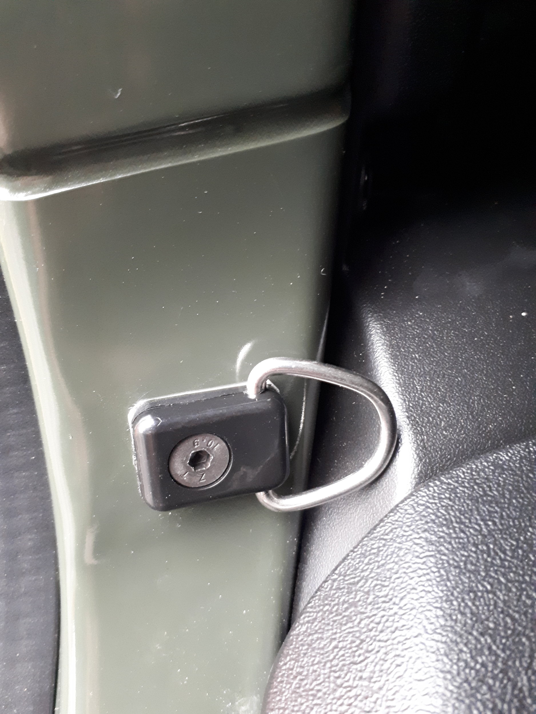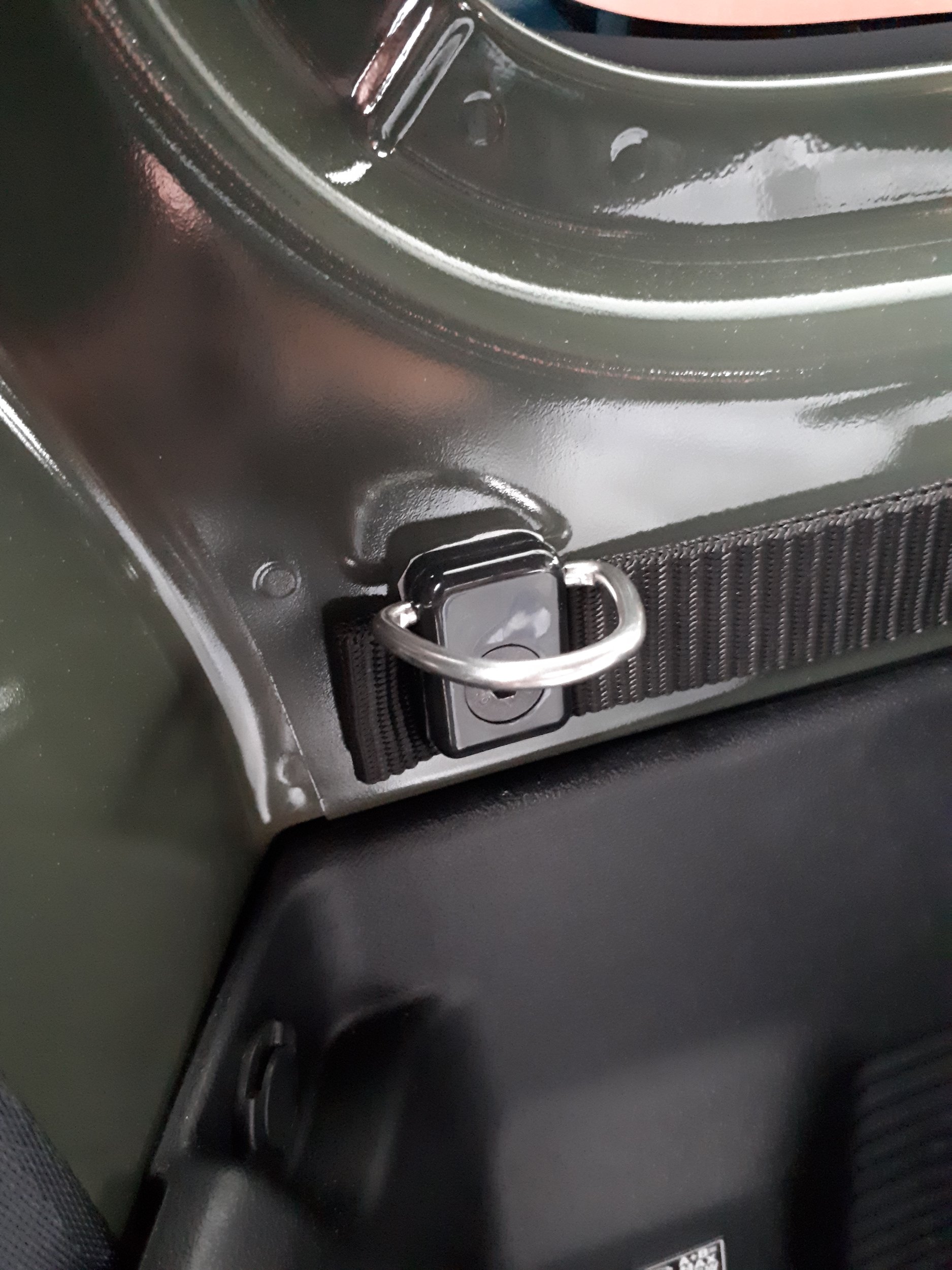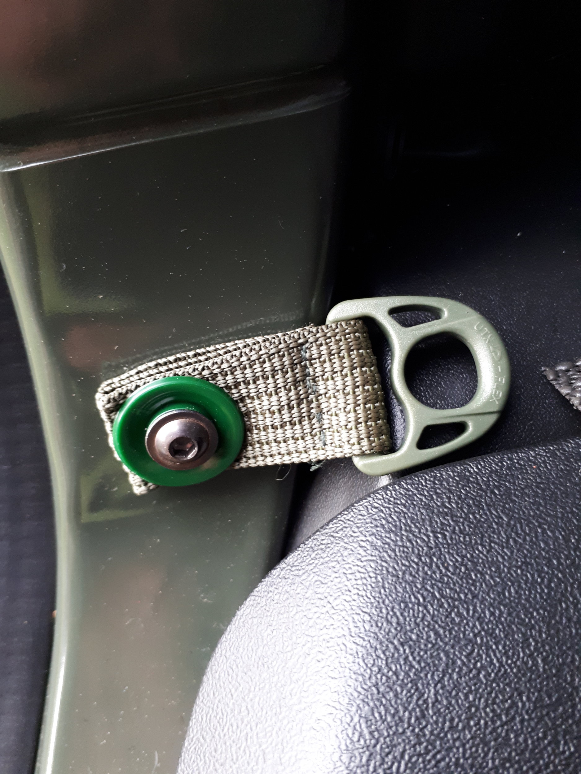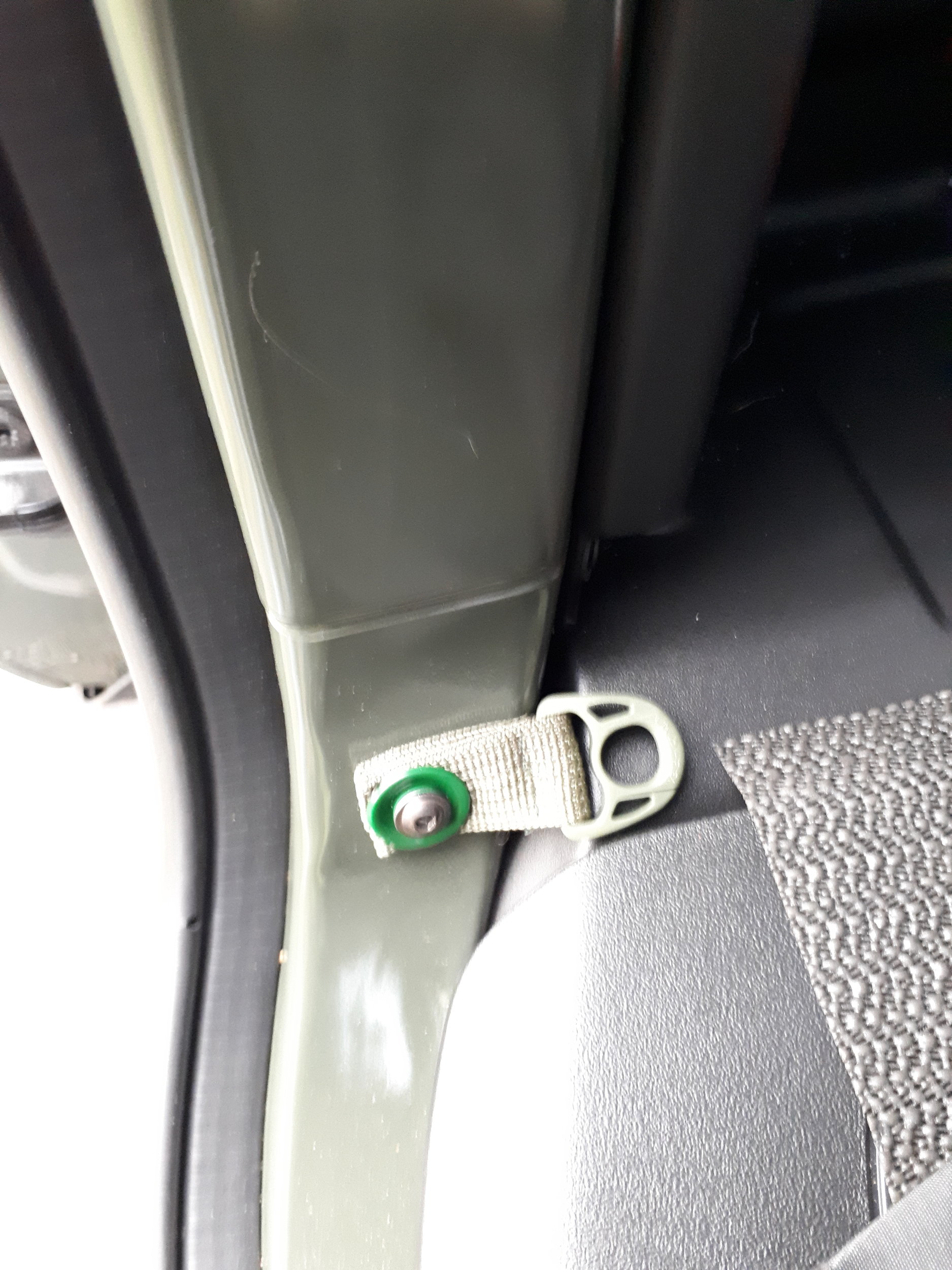 Пока жду петли с Али, сколхозил из стропы и усиленого полукольца, 2 в проеме и 2 у задних сидений: