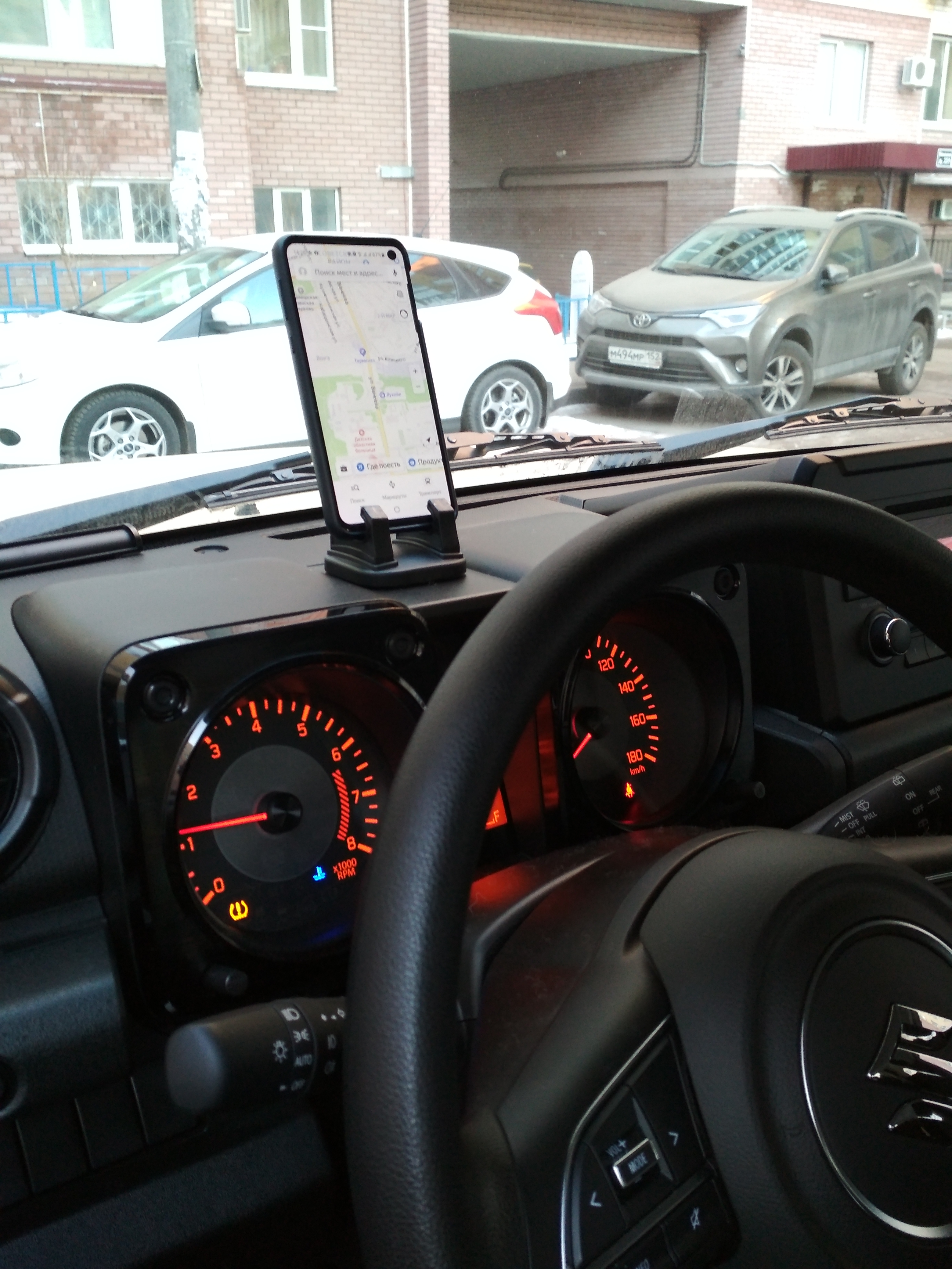 Спасибо! В горизонтальном положении сильно мешает на приборке обзору спереди? В навигатор то точно смотреть самое удобное расположение.Сфоткала. Держится крепко.