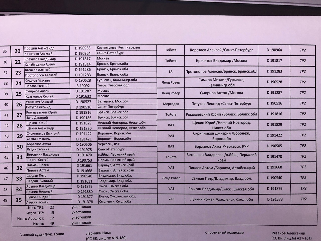 Наиболее “спокойным” кажется зачет ТР1. В самой массовой зачетной категории уже зарегистрировано более 20 экипажей со всех уголков страны, некоторые из них имеют отличные шансы на победу в соревновании, что может изменить не только расстановку сил в первой тройке победителей, но и определить судьбу чемпионского титула по итогу сезона в классе.