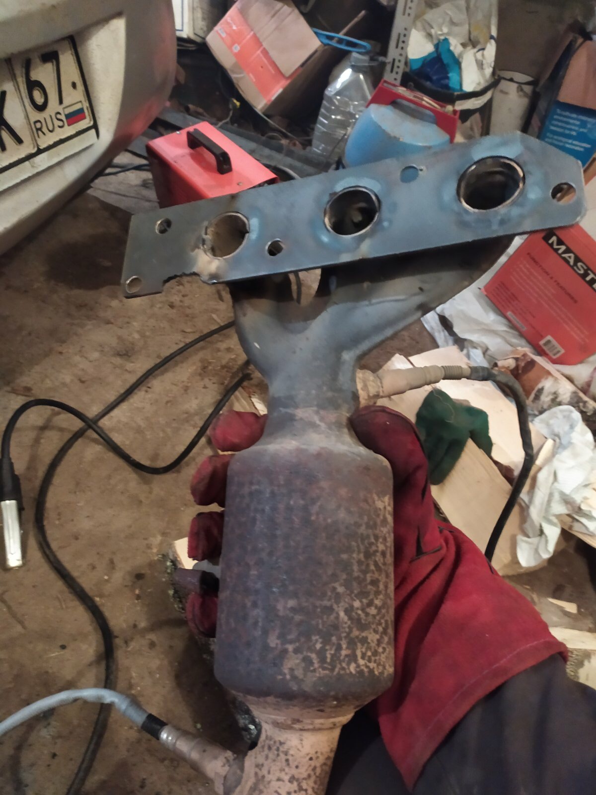 По любому кому нибудь пригодится, потому что коллектор толщиной не более миллиметра, думаю через годик другой многих эта ерунда побеспокоит. В общем образовалась проблема с коллектором ещё год назад, стал подсекать под прокладку, забивал на это дело пока недавно не стали выхлопные газы в салон попадать, дошло до того что в пробках с открытым окном стоять приходилось... поиски беушного коллектора результатов не дали, их как будто нет. Новый стоит пол машины. Вот решил отремонтировать, вроде все работает, единственное остался небольшой сверчок , но это я видимо пластину перегрел когда варил, повело, как будет свободное время сниму шлифану. Пластина изготавливалась по прокладке, по коллектору вырезать уже было невозможно