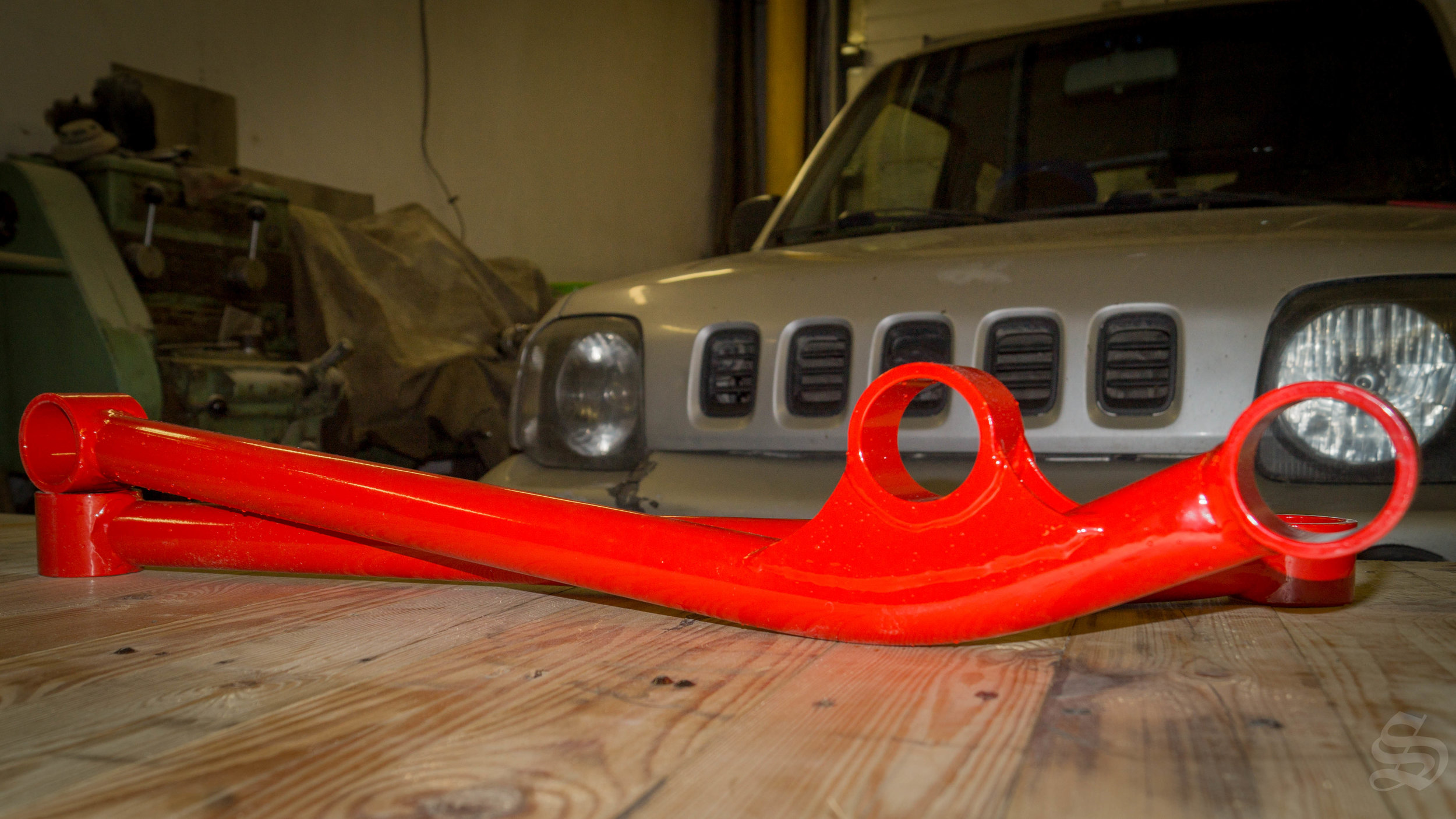 выравнивают болт аморта относительно верхнего крепления, правка 5 градусов (под лифт 75мм), поднимают крепление на 30мм(можно сделать больше)