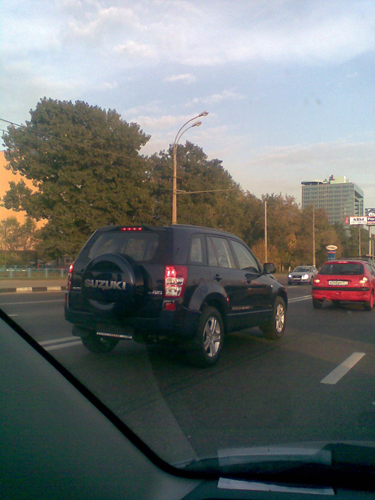 Сейчас мимо трибуны проезжает колонна автомобилей марки Suzuki под управлением рабочих и служащих, направляющихся на свои рабочие места. Их объединил всеросийский, даже всеСНГшный сайт www.suzuki-club.ru