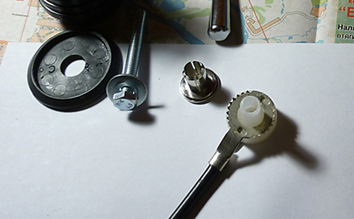 Берёшь болт, нанизываешь на него правую фигню с проводом, вот так как она на фоте лежит - шляпка болта снизу, зубья вверх, далее нанизываешь цангу и всё это прижимаешь снизу к железяке на которую ставишь антенну. С обратной сторону железяки соответственно круглую чёрную лепёху, далее основание. И затягивай, но не насмерть, а то сдриснет пластиковое основание. Потом через месячишко-другой надо будет подтянуть болт.
