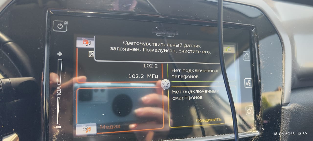 Подскажите, где находится светочувствительный датчик? На магнитоле появилось сообщение, что он загрязнён.