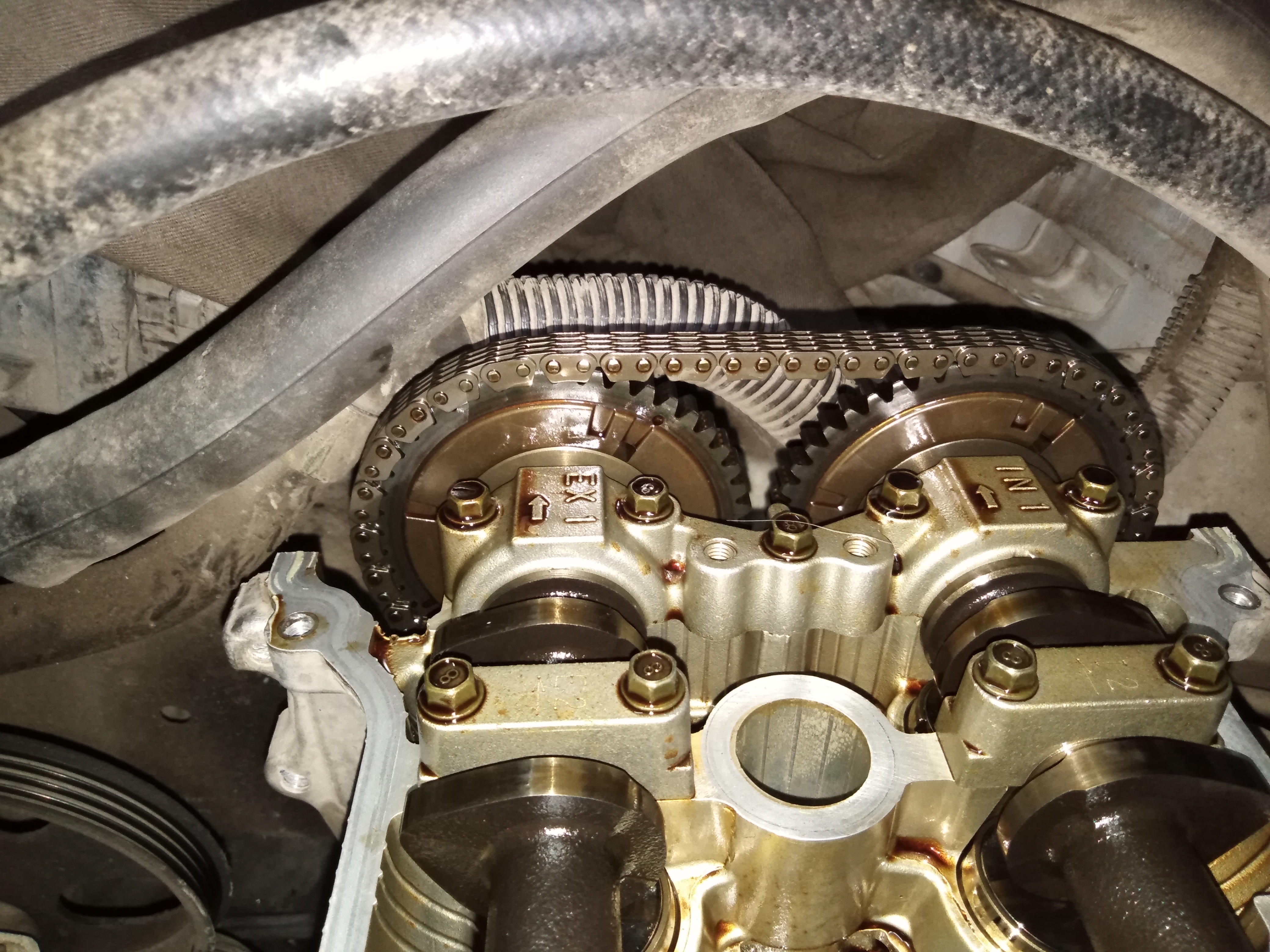 Вопрос, а может ли быть такое из-за шестерни фазорегулятора случится все-таки? Просто там больше ничего механического нет, грешить-то больше не на чего. Цепь стояла в метках, все вроде как бы нормально